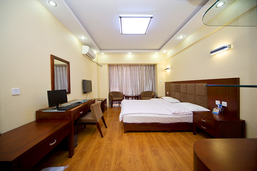 客房服务:24小时热水及客房服务、免费洗漱用品、浴室化妆放大镜、中央空调系统、独立浴缸和淋浴、吹风机、拖鞋、独立写字台、电热水壶、多种规格电源插座、液晶电视、免费网络等。